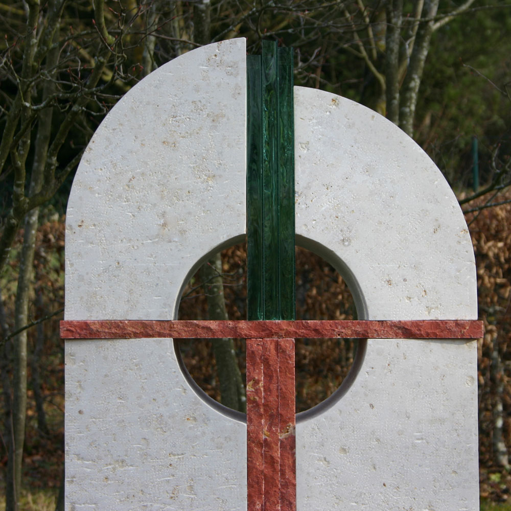 Gestaltung Kreuzsymbolik mit Glasflächen, die das Aufsteigen der Seele versinnbildlichen.