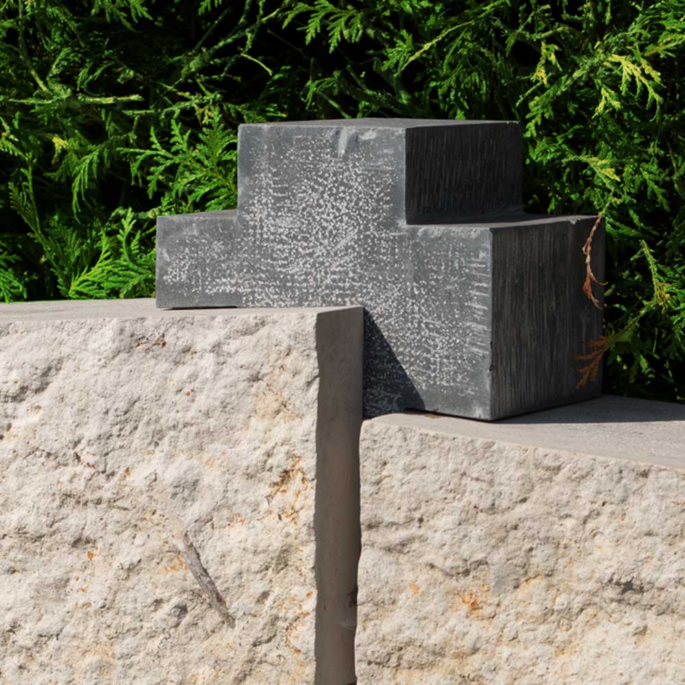 Gestaltung Eine Kruste ist eine Steinoberfläche, die über Jahrmillion hinweg entstanden ist, indem in die Klüfte des Sediments Wasser eingedrungen ist und Mineralien abgelagert hat. Beim Abbau wir der Stein genau dort gebrochen.