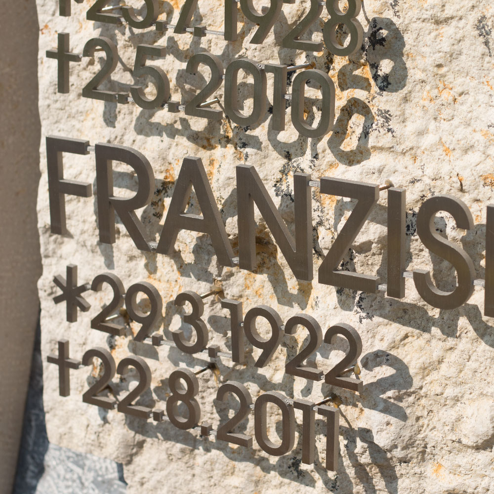 Inschrift Edelstahlschriftzüge aufgesetzt
