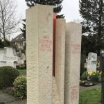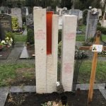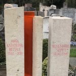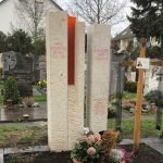 Gestaltung Unsere Stele Licht III wird hier ergänzt zu einem Familiengrab. Das orange Glas wirkt ganz anders, als das zweifarbige der ursprünglichen Version.